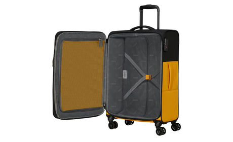 Dare to take on new adventures with our brand new softside luggage collection. Daring Dash's sporty and dynamic design comes in a range of funky two-tone palettes, so you'll be on-trend whatever your destination. All sizes are fixed with a TSA lock for added security, and made with a rich fabric combination to help build up resistance when you're travelling. You'll love the expandability function giving you plenty of packing space.Details