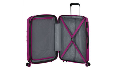 Vår senaste kollektion av hårda resväskor, Speedstar, är redo att lysa klart! Den moderna designen, det sportiga utseendet och den metalliska ytan säkerställer en stark identitet och den perfekta stilen. Genom möjligheten att expandera väskorna i storlek M och L, maximerar du enkelt din packningsvolym. Res bekvämt med dubbla hjul, inbyggt TSA-lås och förbättrad välorganiserad inredning. Med Speedstar får du alltid maximal resekomfort!Detaljer